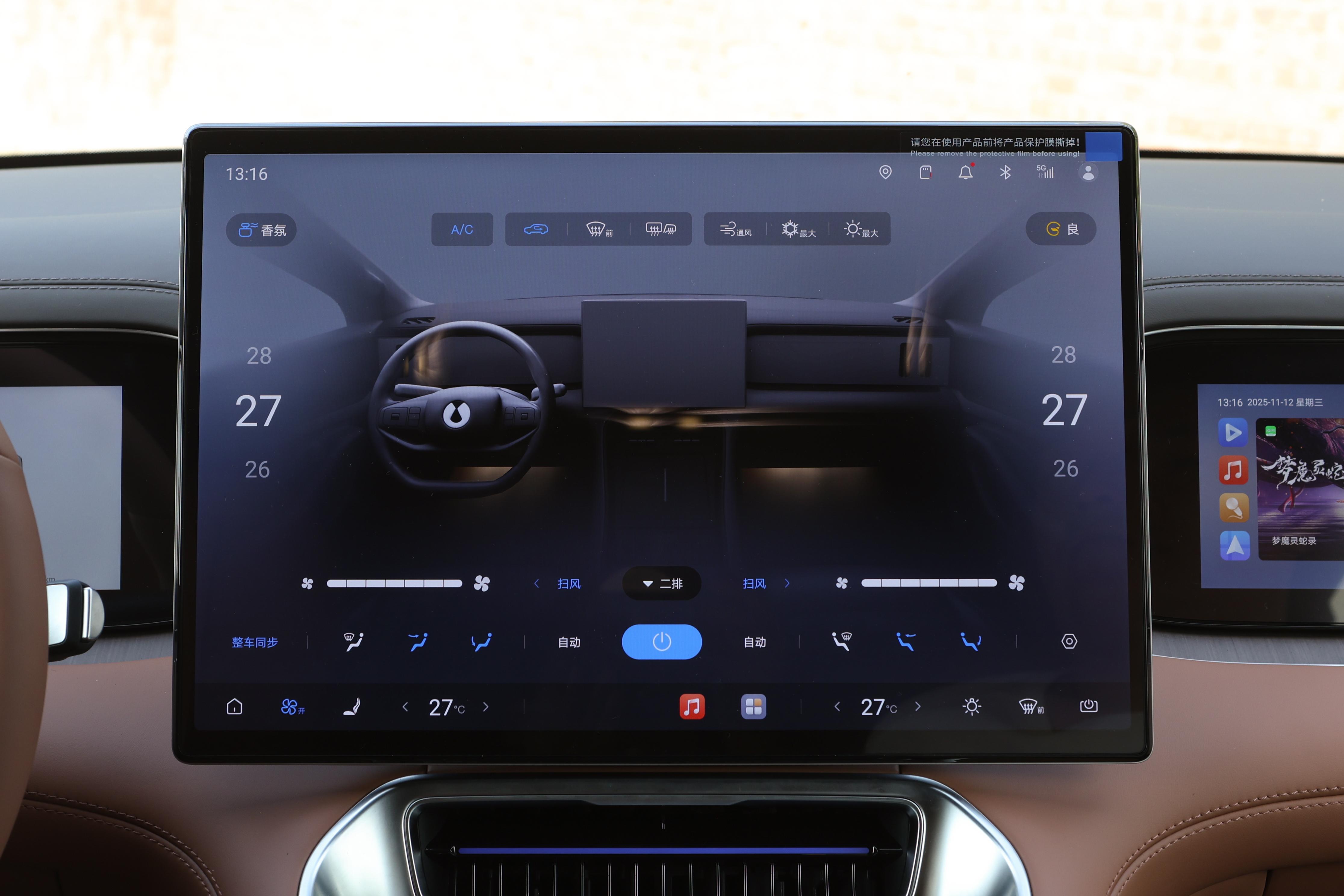 车内搭载了17.3英寸2.5K中控屏和13.2英寸副驾娱乐屏的双屏组合,显示清晰细腻,操作流畅顺滑。它搭载的DiLink智能网联系统支持5G网络和OTA升级,“你好腾势”语音助手识别准确率特别高,还支持免唤醒、分区域唤醒功能。冬季我戴着手套的时候,不用手动操作,直接用语音就能控制空调温度、导航、多媒体这些功能,既便捷又安全。