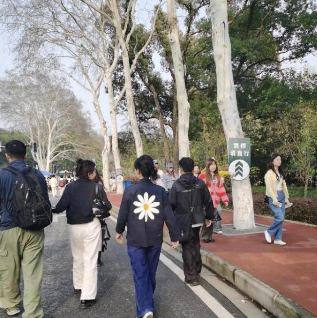 当天下午三点多,武汉大学樱园里挤满了拍照打卡的游客。有人忽然发现花影绰约间站着位气质出众的女士,仔细辨认竟是观众熟悉的"铁梨花"。48岁的陈数素面朝天,只在唇上点着淡淡的豆沙色,及肩短发随意别在耳后,正举着手机和朋友互相拍摄花雨纷飞的场景。或许是感受到周围人善意的目光,她笑着主动和认出她的游客打招呼,还接过几位大学生的合影请求。