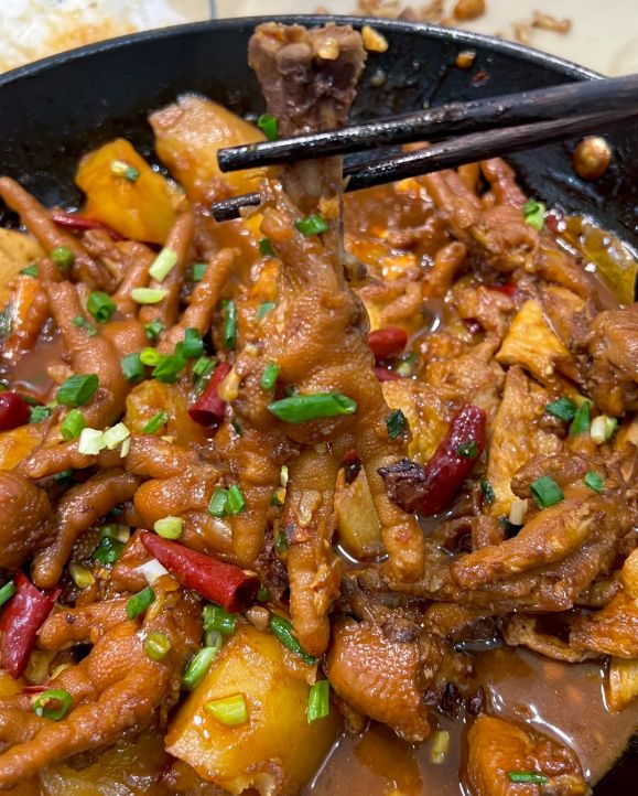 单喝鸡粥,已是享受。但老食客懂得,必须配上一碟小绍兴的“鸡爪”(亦称“凤爪”)。这里的鸡爪并非广式早茶那种豉汁蒸的酥烂,而是另一种风味:个头饱满,皮肉紧实,用糟卤或特制的调料腌制入味,口感是脆韧而有嚼劲的,带着淡淡的咸香与酒香,或是一丝回甘。