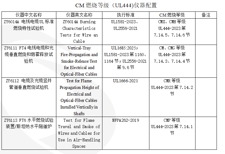 线缆企业要实现合规生产、突破市场壁垒,离不开一套完整、精准的CM燃烧等级检测解决方案。依托多年行业深耕经验,配套研发的ZY系列CM燃烧等级检测仪器,精准契合UL444-2023标准各章节要求,覆盖全系列CM燃烧等级检测,为线缆企业、质检机构、科研院校提供一站式检测支撑,助力行业高质量发展。