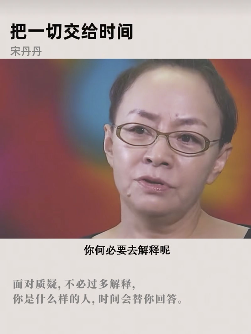 宋丹丹曾经说过:“面对质疑,不必过多解释,你是什么样的人,时间会替你回答。”