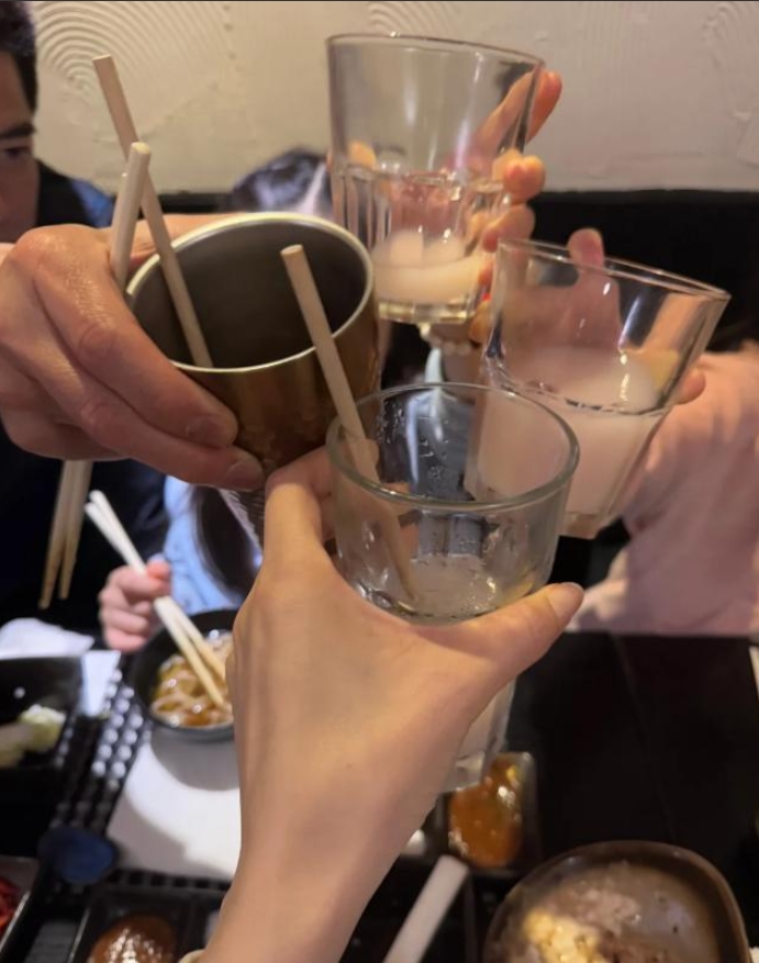 没想到方媛的厨艺这么好,这卖相跟饭店的有的一比了,烤鱼烤串,一家四口还高兴的举杯庆祝,郭富城和方媛则小酌一杯,而两个女儿杯子里则是酸奶之类的,方媛不仅是贤妻良母还会讲自己打扮的美美的。