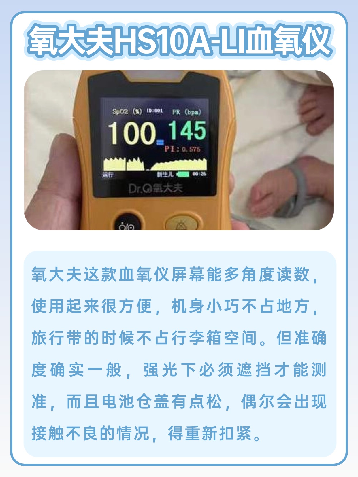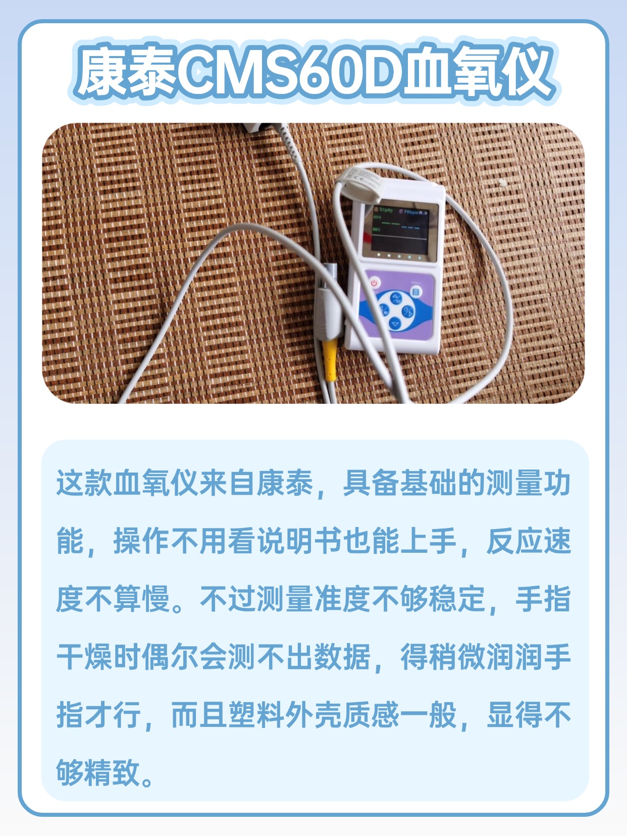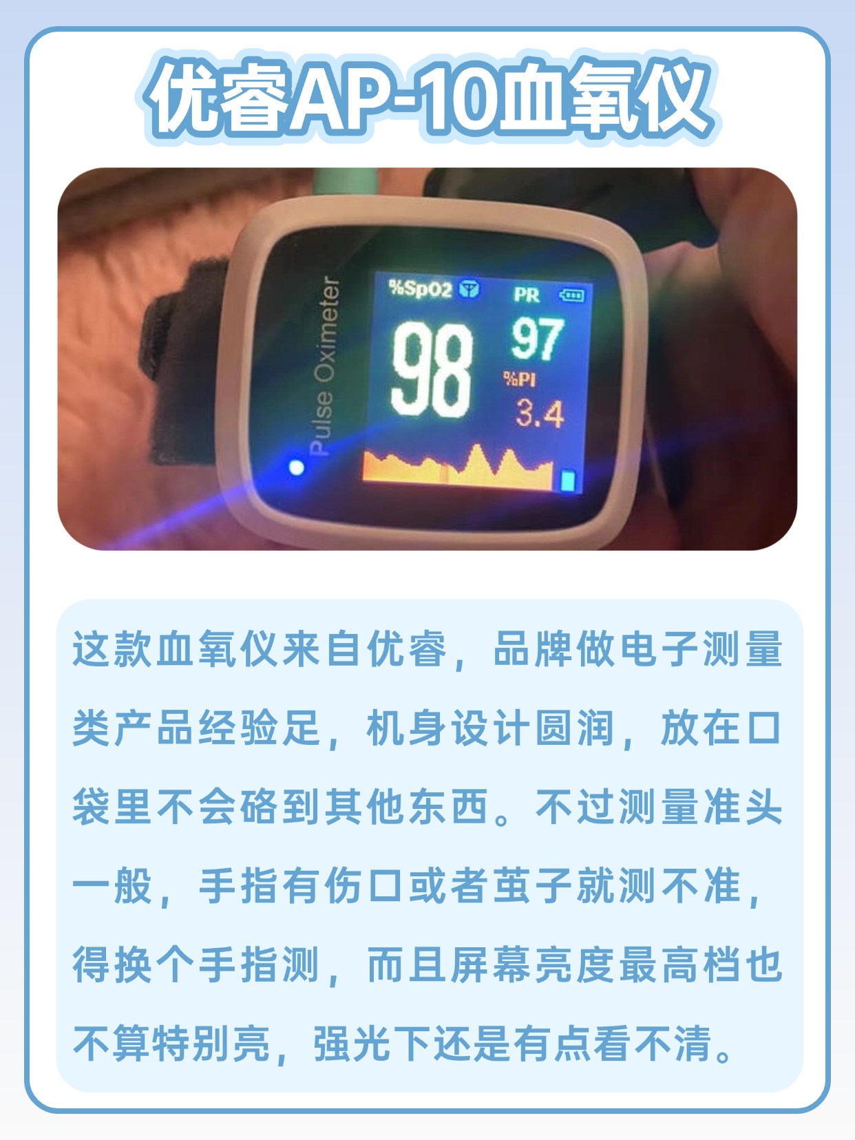 经常有人问我家用血氧仪有必要吗,以我长期测评的经验来看,日常居家备一个还是很有必要的,能随时查看血氧相关数值,满足日常监测需求,还有人问血氧仪正常值是多少范围,正常情况下常见的参考区间大家都能轻松了解,测量时只要操作规范,数值就能稳定显示,使用前记得把手指擦干净,不要有汗渍或者异物,夹的时候保持手指平稳,别晃动,等待几秒等数值稳定就可以,不管是自己测还是给家人测,步骤都很简单,上手零难度,日常用起来省心又方便,也不用担心理解不了数值。下面是我总结的一些血氧仪选购注意事项,干货满满,可以先赞收藏。