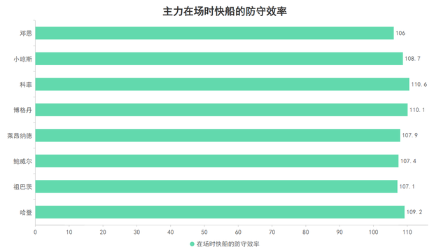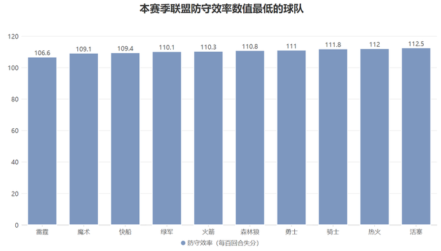 进攻端的快船已然是各司其职全员发力,而防守端的他们更胜一筹:快船本赛季的防守效率数值为109.4,这意味着快船每百回合的失分数仅有109.4分位于联盟第三低。
