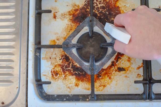 表面喷洒清洁剂或者自制的清洁溶液(例如用热水混合适量的小苏打调配而成),然后让其静置 5 分钟左右。这期间,清洁剂能够逐渐渗透并分解机身表面的油污。