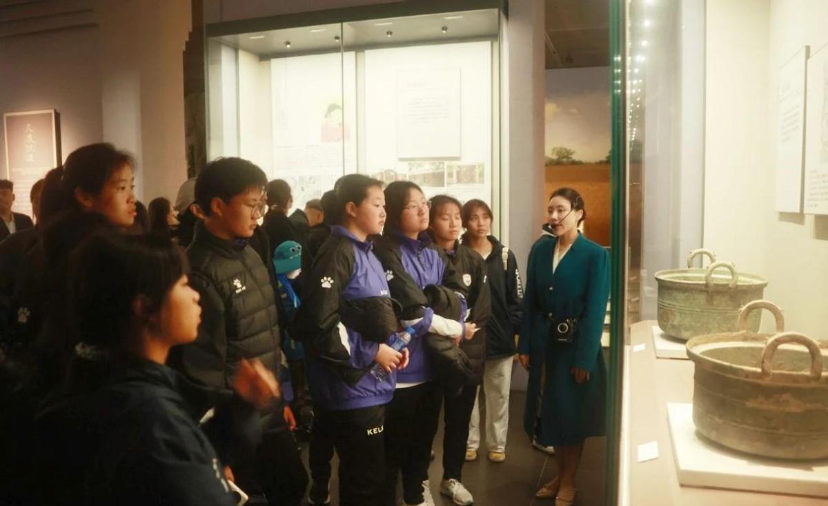 从世纪公园出来没一会儿,队伍就浩浩荡荡来到了海南省博物馆,讲解员在前面带路,球员们跟在后面东张西望,一边听着海南的历史故事一边参观各种文物,虽然有些人可能对这些古董不太感兴趣,但是能了解到海南的海洋文化和少数民族风情,也算是长见识了。