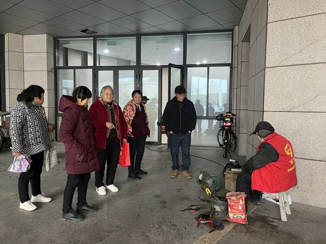 居民们纷纷带来家中钝损的剪刀、菜刀,张师傅熟练地拿起工具打磨,飞溅的火花中,一把把钝器重新变得锋利,解决了居民日常居家的小烦恼。