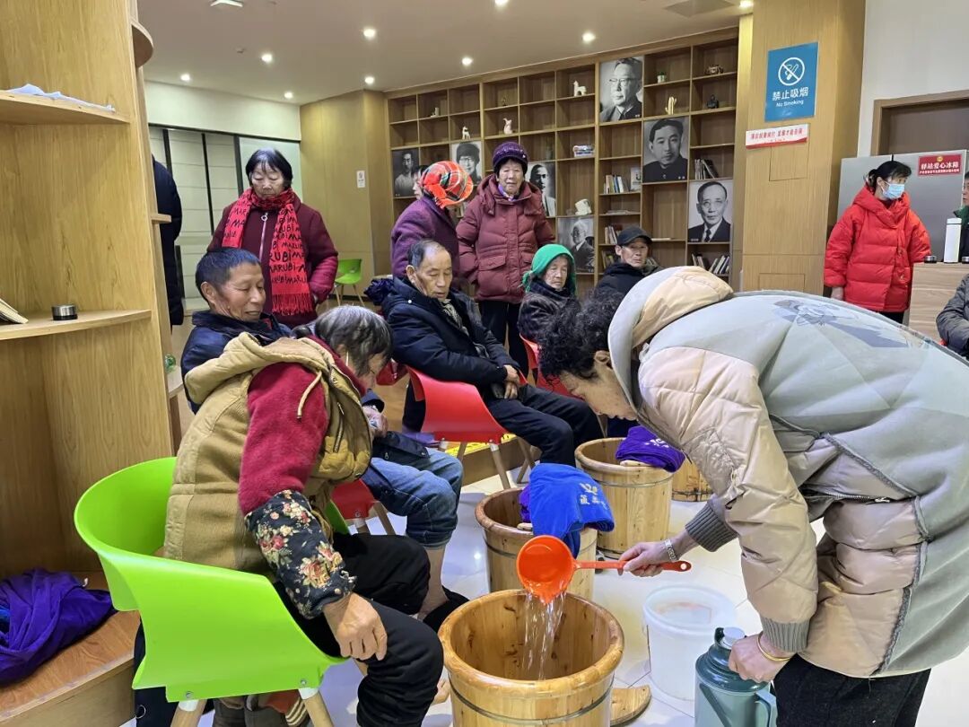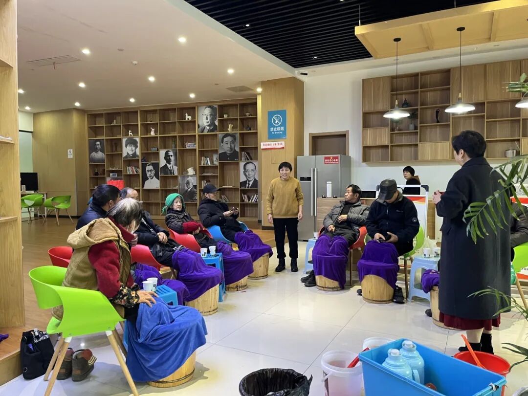 淡淡的药香弥漫四周,居民们围坐在一起,沉浸式体验养生泡脚服务。藏奥堂公益养生泡脚的工作人员一边为居民调试水温,一边讲解养生泡脚的益处及注意事项,让居民在放松身心的同时,了解更多养生知识。温热的药液浸润双脚,驱散了冬日的寒意,也温暖了居民的心田,大家在轻松的氛围中交流谈心,感受着社区带来的贴心关怀。