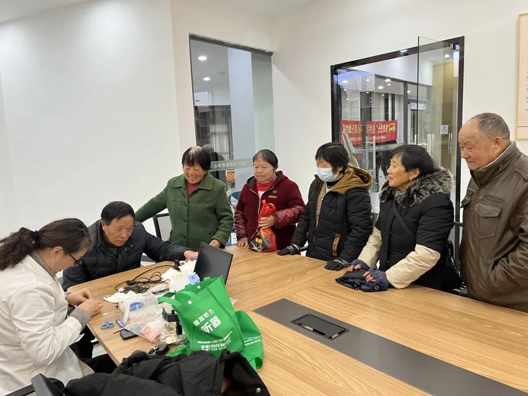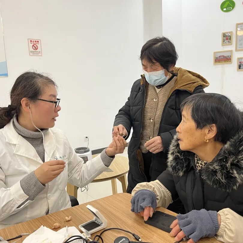 海盐惠耳听力的蔡医生为有需要的居民提供免费听力检查,蔡医生手把手指导助听器清洗保养技巧,帮助居民解决听力辅助设备使用中的常见难题,用专业服务守护居民听力健康