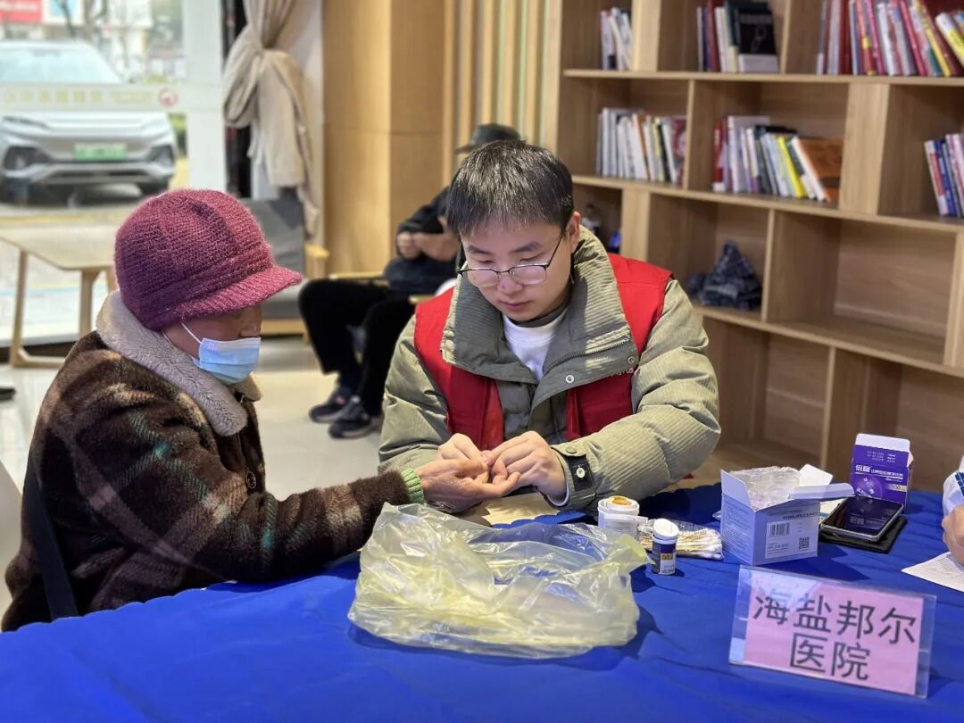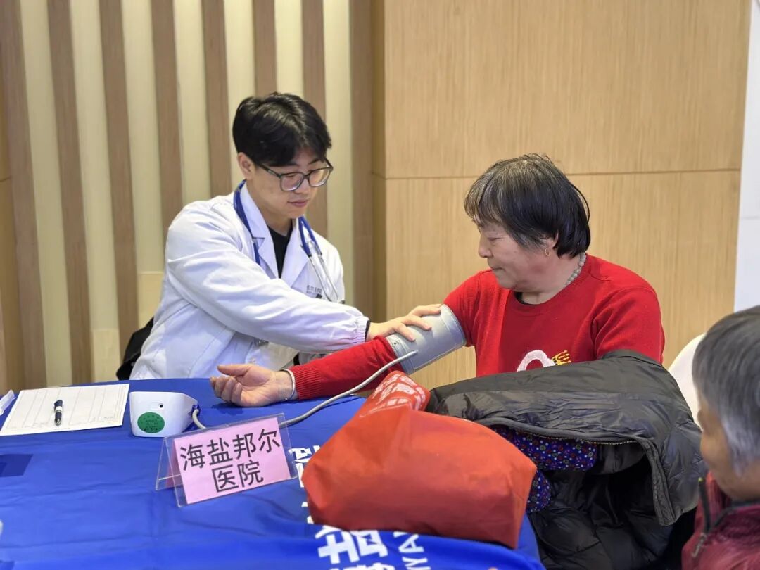 活动现场,来自海盐邦尔医院的医生们为居民提供免费血压、血糖测量服务,耐心细致地解读检测结果,针对不同年龄段居民的身体特点,给出个性化的饮食、运动及用药建议。