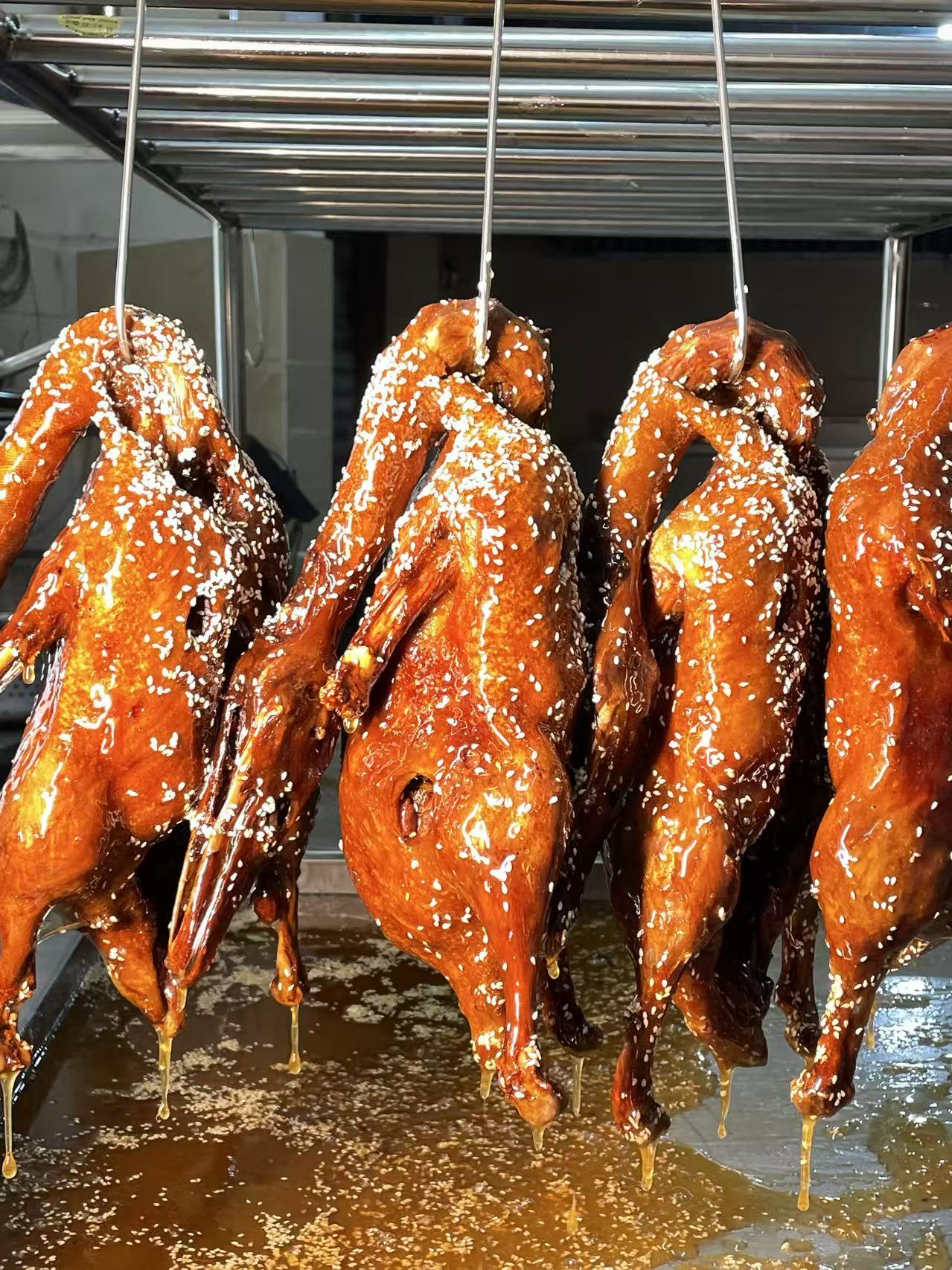 吉太太甜皮鸭的团队将传统制作工序进行了科学拆解与标准化。这个过程并未简化如风干和上皮这类对口感至关重要的传统步骤,反而通过标准化的流程设计,确保了每一环节的精确执行。