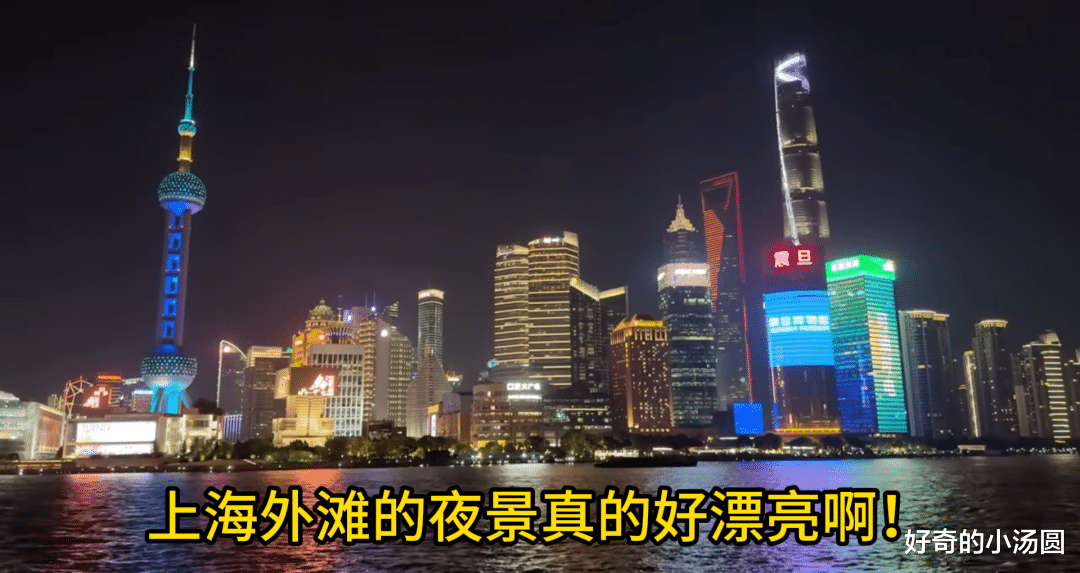 参观完母校后,小姐姐又坐车回到了外滩,她感慨道:只要走到外滩,就能看到这样的景色,上海的夜景真的太美了!