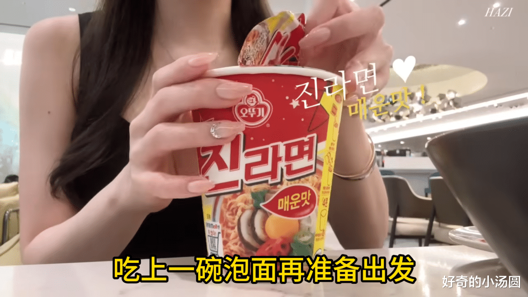 虽然是小富婆,但作为一名韩国人,还是逃不过泡面的魔爪。就在现在,小姐姐正在高档餐厅吃着她最爱的桶装泡面。
