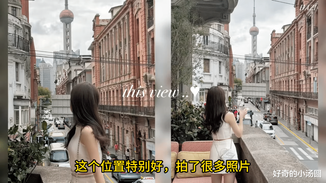 吃完面后,小姐姐为了饭后消食,开始在上海街头闲逛。看到一家位置非常好的咖啡馆,于是来到二楼阳台一边喝咖啡一边欣赏这里独有的风景。