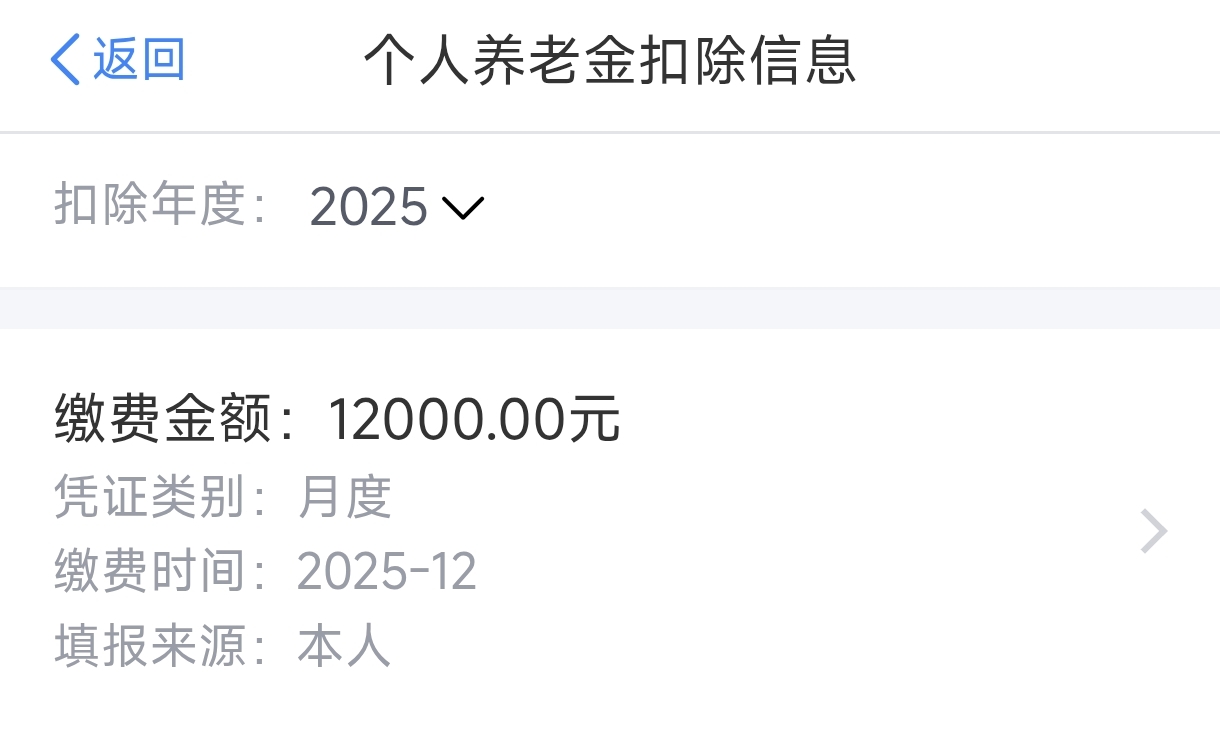 在2025年1-12月缴纳了个人养老金的人,不要忘记汇算清缴的时候填上去,个人所得税APP里专门有个人养老金的申报,可以先填上去,等到汇算清缴的时候系统会自动抵扣的。
