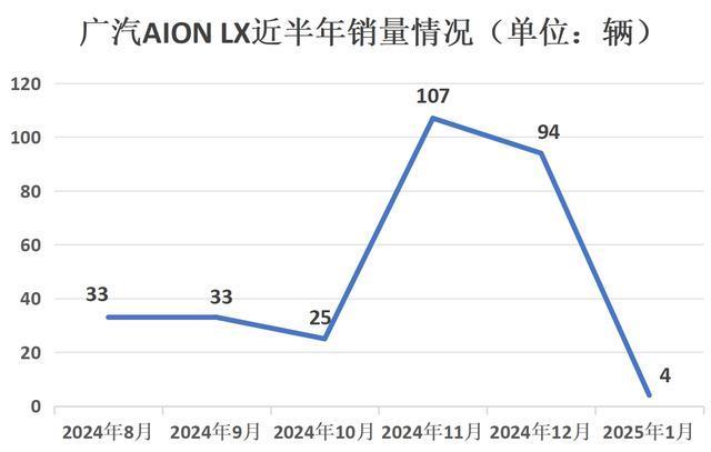 AION LX刚推出的时候在网上确实引发了一阵轰动,不过是雷声大、雨点小。这车上市之后,每个月的销量从没超过1000辆,近半年每个月平均下来销量只有两位数,今年1月更是只售出4辆。到底为什么这样的一辆车会没人买呢?