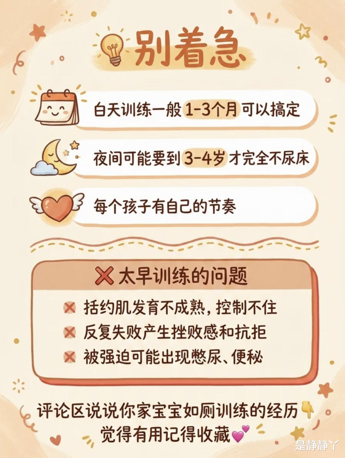 反之,如果宝宝还没准备好,你硬要开始,那就是在和自己较劲。他不理解为什么要坐在那个奇怪的东西上,也控制不住,只会感到困惑和挫败。这时候的每一次失败,都可能让他对上厕所这件事产生抵触,反而把简单的训练变成一场持久的拉锯战。