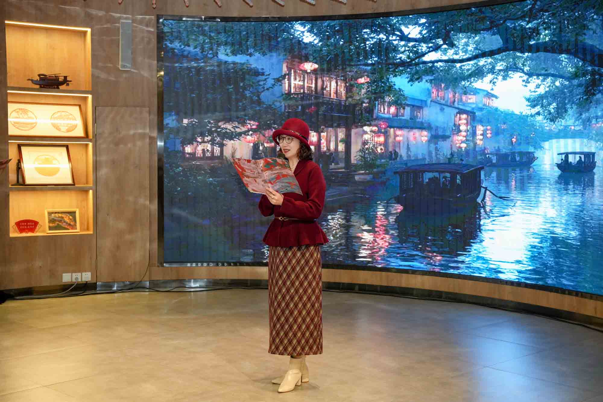 活动现场,精心营造出了枕河人家冬日的清雅氛围,悠扬的《姑苏行》旋律在空气中轻轻飘荡,二者相得益彰。主持人徐书僮以“烟雨姑苏,墨染檐角;书香漫巷,风递梅香”这富有诗意的话语开场,向到场的嘉宾们致以了诚挚的问候。随后,他说明了非遗传承人蒋余祥先生因身体原因未能亲临现场的情况,现场嘉宾们一同为蒋先生送上了美好的祝愿。紧接着,《姑苏吆喝》非遗视频缓缓播放,那地道的吴侬软语仿佛穿越了漫长的岁月,唤醒了人们对老苏州市井生活的珍贵记忆。丁香文艺社的演职人员华乃文、金丽萍、陈传奇登台亮相,他们的身影让浓郁的姑苏韵味在厅内久久不散。