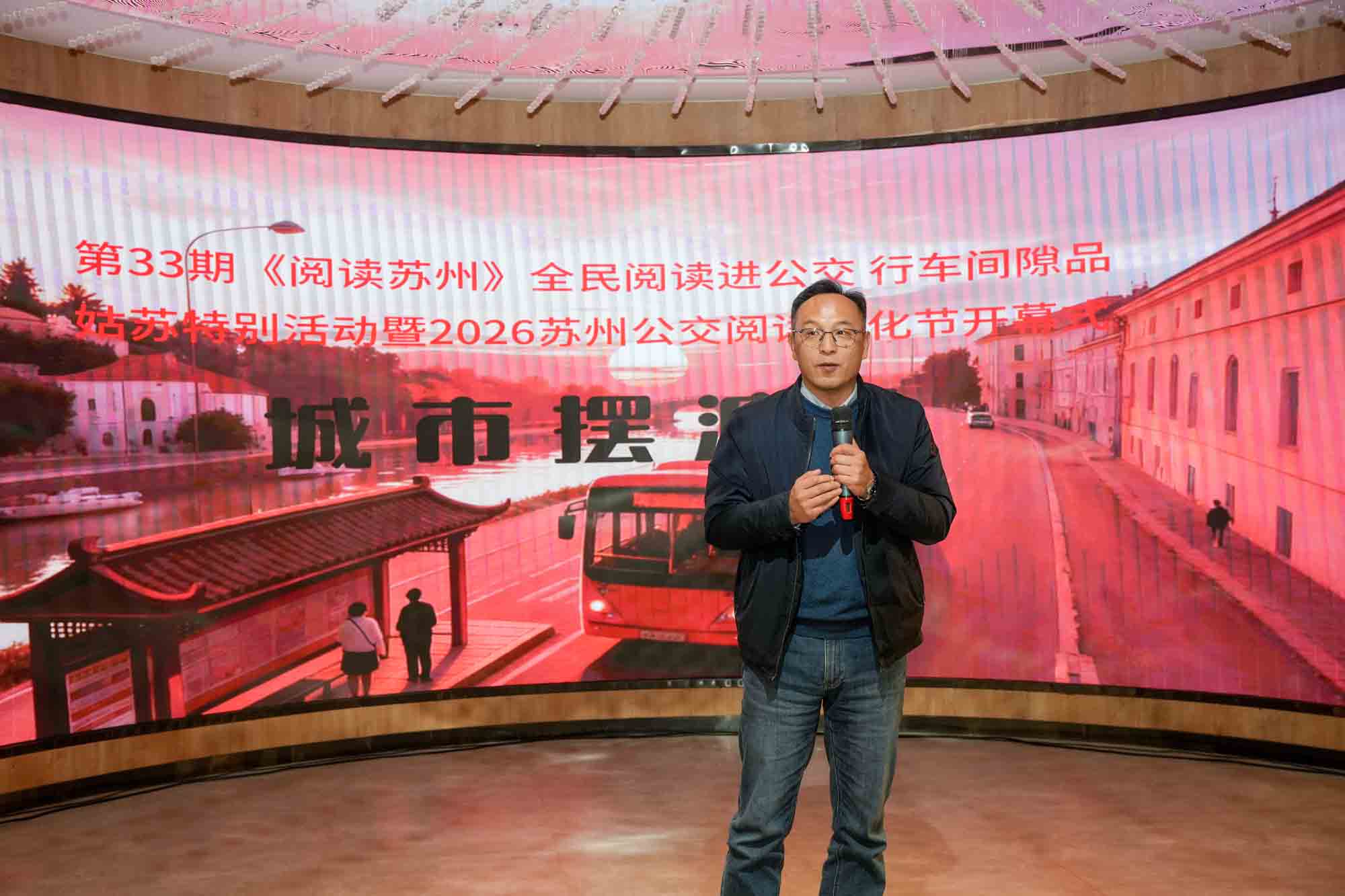 苏州市公交集团姑苏分公司第二党支部副书记李福全在致辞中,表达了对城市摆渡人的殷切期望和对书香公交的美好祝愿。他提到,首个书香驿站的落地是公交文化建设的重要里程碑。未来,将以驿站为新的起点,精心打造流动书香车厢和特色文旅阅读线路,让车厢成为移动的文化传播阵地。同时,还将启动2026年“阅读苏州”书香推广人评选活动,选拔优秀的公交人和文化爱好者,力争在今年7月的江苏省书展上取得优异成绩,以此为重要节点,为本次公交阅读文化节画上一个圆满的句号。