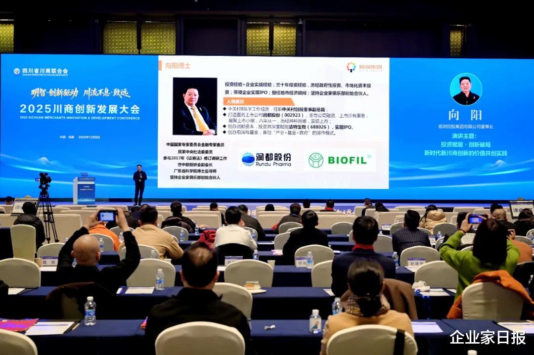 12月9日,由四川省经济合作局指导、四川省川商联合会主办、四川日报报业集团川商传媒承办的“2025川商创新发展大会”在成都隆重举行。本届大会以“明智·创新驱动,川流不息·致远”为主题,聚焦创新赋能与产业升级。四川省政协原副主席曾清华、四川省川商联合会会长陶振华等出席并致辞,四川省委省政府决策咨询委员会副主任、成都市社会科学界联合会主席、四川省社会科学院二级教授李后强,前润控股集团有限公司董事长向阳等嘉宾围绕川商精神、产业机遇等议题发表主旨演讲,为川商高质量发展建言献策。