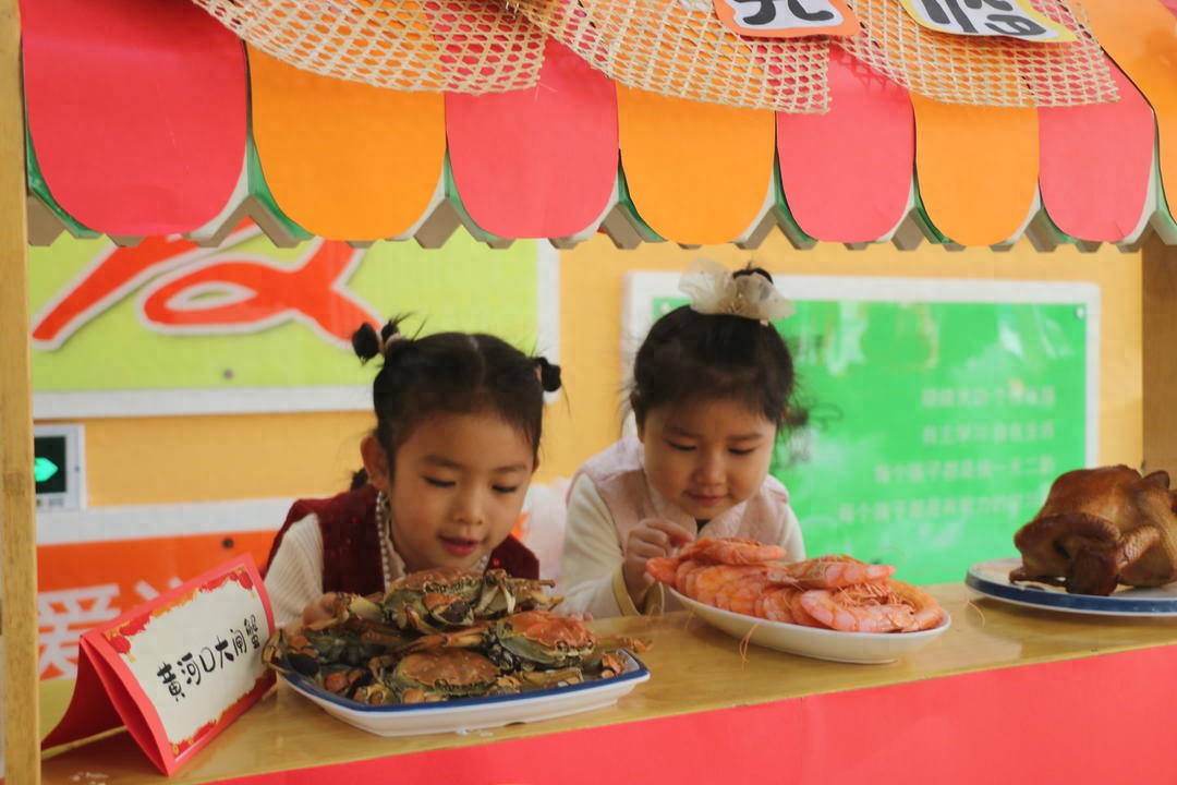 活动以“传承中华优秀传统文化、彰显黄河口饮食特色”为核心,精心打造五大卡通主题美食铺,让年味与童趣双向奔赴。黄河口美食铺的大闸蟹、肴驴肉地道醇厚,尽显本土风味;年货铺的糖葫芦、糖炒栗子甜香四溢,唤醒传统记忆;水煎包铺、饮品铺、水果铺品类丰富,满足多元味蕾。从前期筹备到现场体验,幼儿全程深度参与,活动现场孩子们在教师引导下有序品鉴、分享交流,沉浸式感受饮食文化的深厚内涵与节日的喜庆氛围。