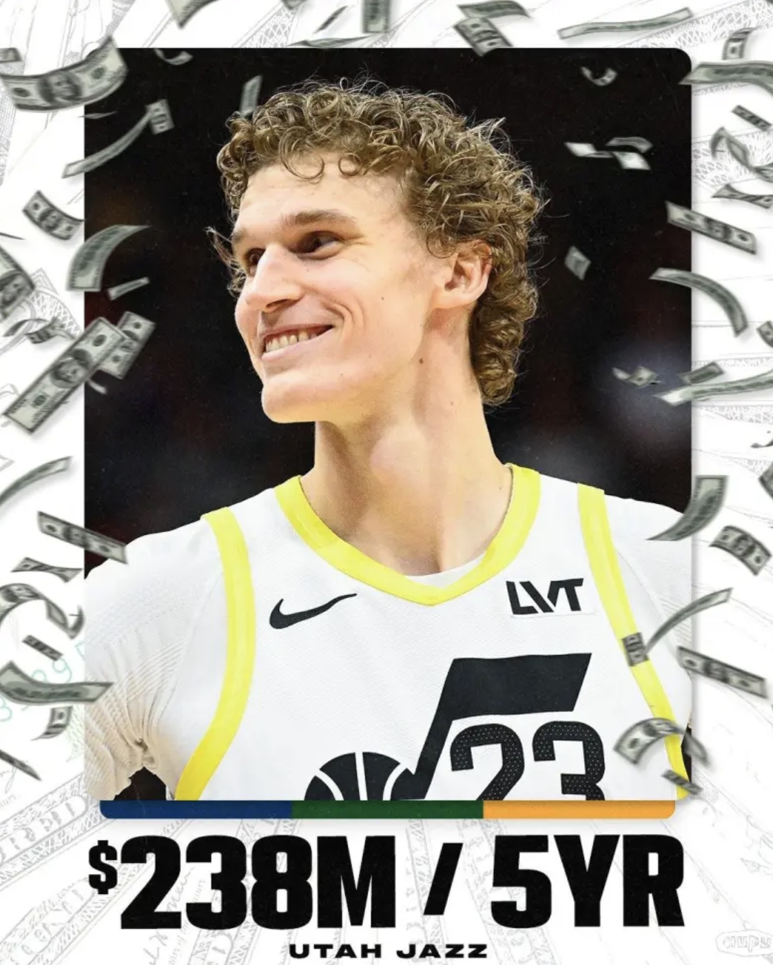 这份天价合同不仅包括了高达2.2亿美元的基本薪资,还附带了一项重要条款:马尔卡宁在未来六个月内不得被交易,确保了他在爵士队的长期稳定性。据悉,马尔卡宁的薪资将在接下来的赛季中迎来大幅提升,24-25赛季的年薪将从原先的1800万美元猛增至4220万美元,显示出爵士队对其未来潜力的高度认可。