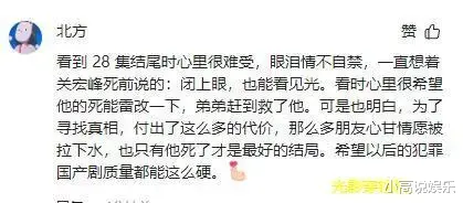 说到这个结局,我得承认,看完之后心里挺不是滋味儿的。关宏峰这个角色,说实话,真的是演得太好了,潘粤明一人分饰两角,把兄弟俩的性格特点拿捏得死死的。看到弟弟关宏宇代替哥哥给真正的关宏峰扫墓那一幕,我心里一阵酸楚。 这不光是因为剧情本身,还因为这种兄弟情深的画面确实打动人。有时候想想,现实生活中要是也能有这么铁的关系就好了。