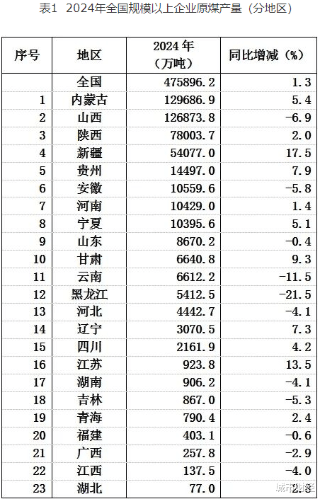 2024年,内蒙古全年煤炭产量12.97亿吨,位居全国第一。