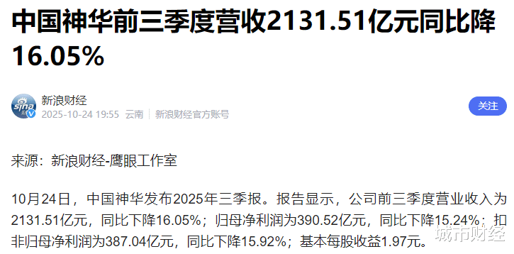 而作为煤炭第一股的中国神华,去年前三季度营业收入、净利润均出现了下滑。