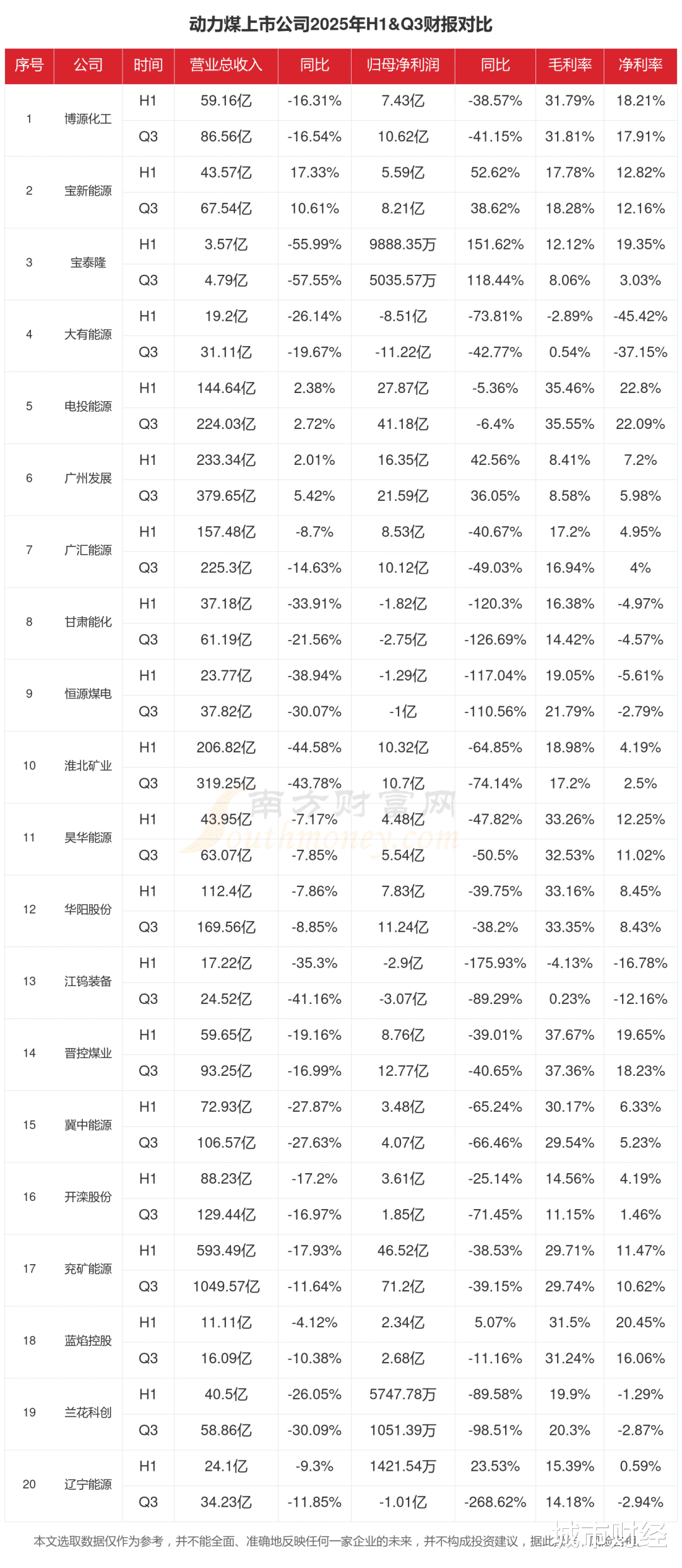 去年前三季度,A股42家动力煤企业大多数的营业收入与利润都在下降。