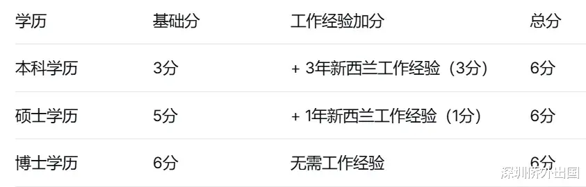 如果你的职业不在绿名单上,也别担心——"六分制"为你提供了另一条清晰的路径。顾名思义,六分制通过综合评估你的学历、新西兰本地工作经验、收入等维度进行打分,满6分即可申请(同样需要获得认证雇主Offer)。常见组合方式如下:
