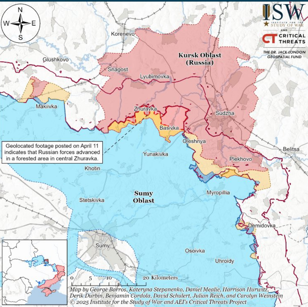 苏梅方向,战斗区在朱拉夫卡和韦塞洛夫卡边境村庄附近扩大,据记录,这些村庄进入了“灰色地带”。