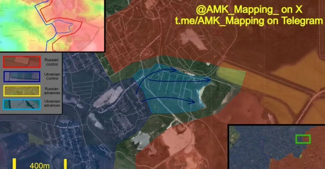 与此同时,俄军发动突袭,直接往城市西北部Pleshchiivka深入突进,不过很快遭到乌军无人机打击——这很可能是俄军利用改装后的剩余装甲车发起的突围行动,不过截止目前没有取得成功。