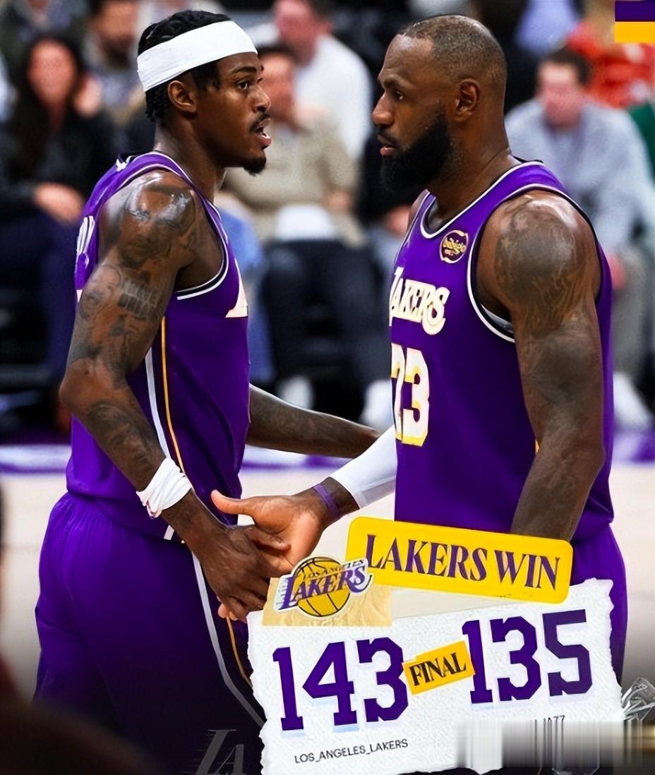 今天的NBA可真是热闹,湖人队和爵士队打了一场对攻大战,最后湖人143比135赢了球。这比分,不知道的还以为是全明星表演赛呢!湖人这赛季的防守,时不时就跟丢了魂似的,上半场让爵士得了不少分。好在到了下半场,他们总算想起了防守这回事,末节进攻一开,直接就把比赛收了。说起来,湖人现在这帮人,打得是真不错。