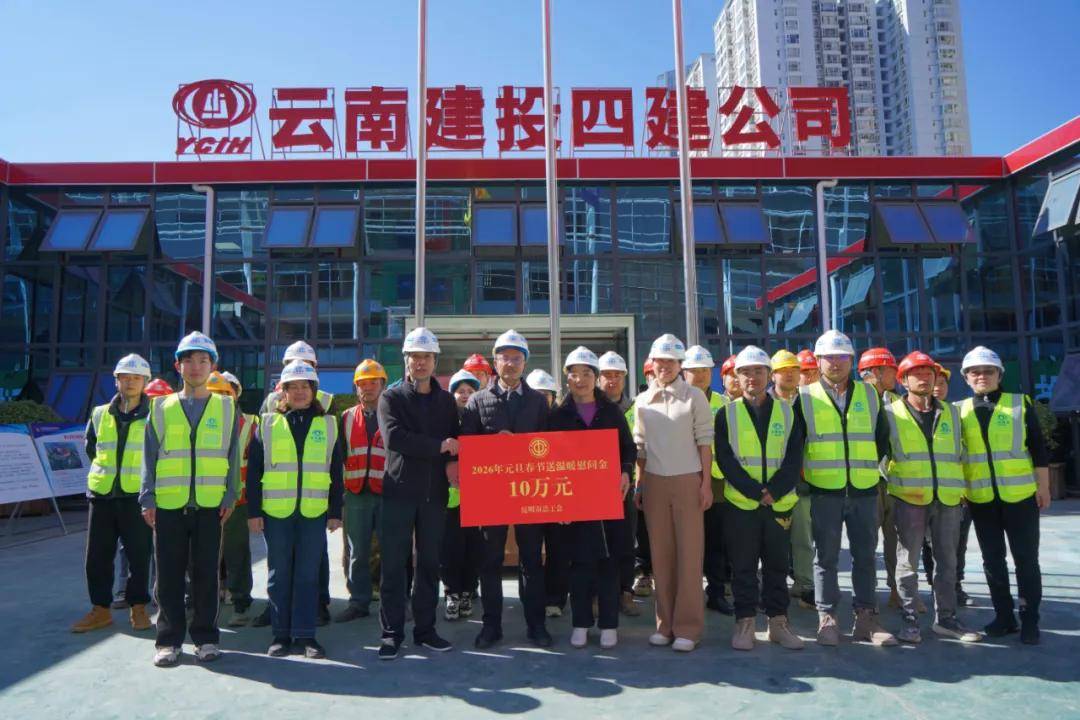 “大家辛苦了!感谢你们为昆明城市建设付出的汗水和努力!”慰问组一行走进项目施工现场,与项目负责人、施工人员亲切交流,详细了解工程进度、施工安全和工人们的生活保障情况,对建设者们“科学策划、高效施工”的精神表示赞许,并向坚守岗位的一线职工代表送上慰问金和慰问信。