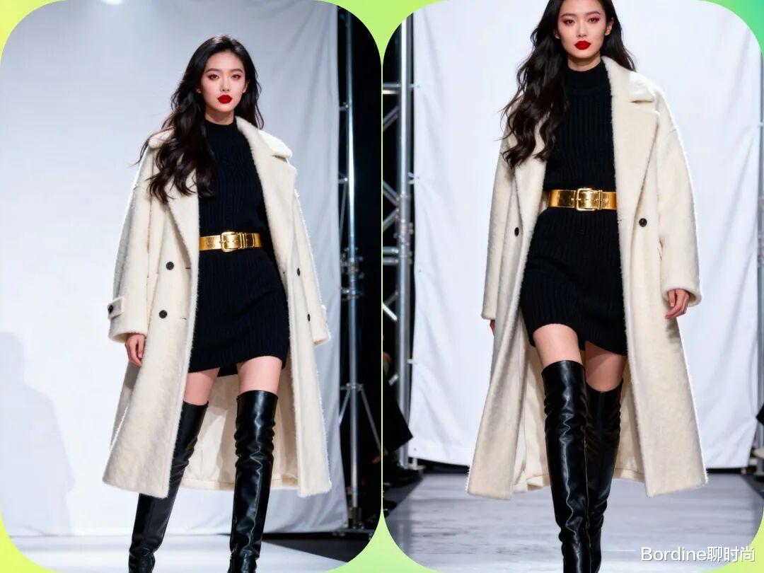 亮点展现:通过腰带、腰包或腰部剪裁来强调腰线,优化身材比例。搭配长靴和精致首饰,提升整体完成度。