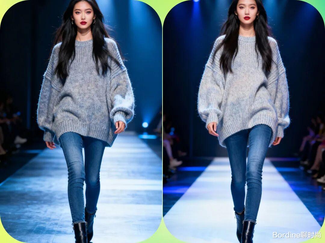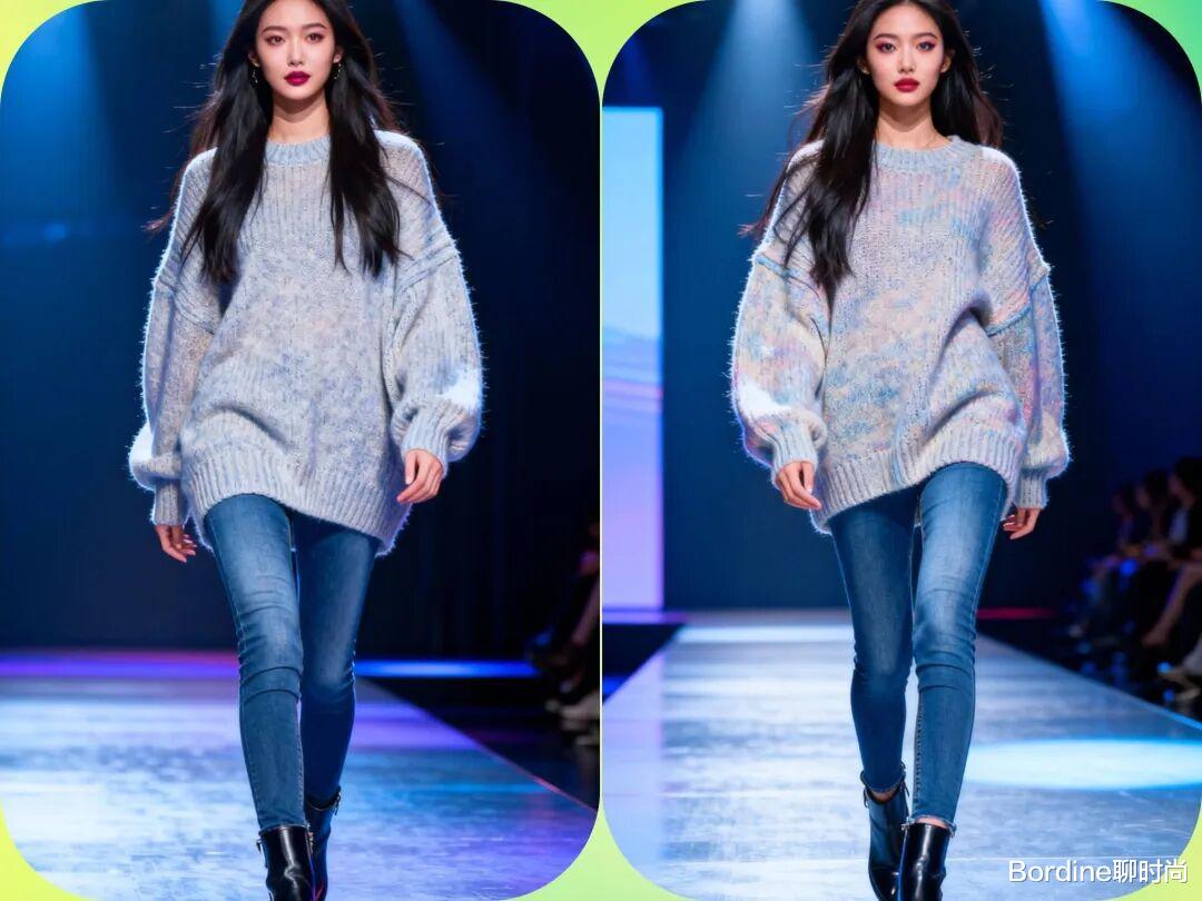 二、oversized针织衫+牛仔裤:随性休闲风搭配方式:宽松的oversized针织衫搭配直筒或紧身牛仔裤,配上运动鞋或短靴,轻松打造日常休闲look。风格气质:这套搭配呈现出轻松随性的休闲风格,带有几分慵懒又不失时尚感。