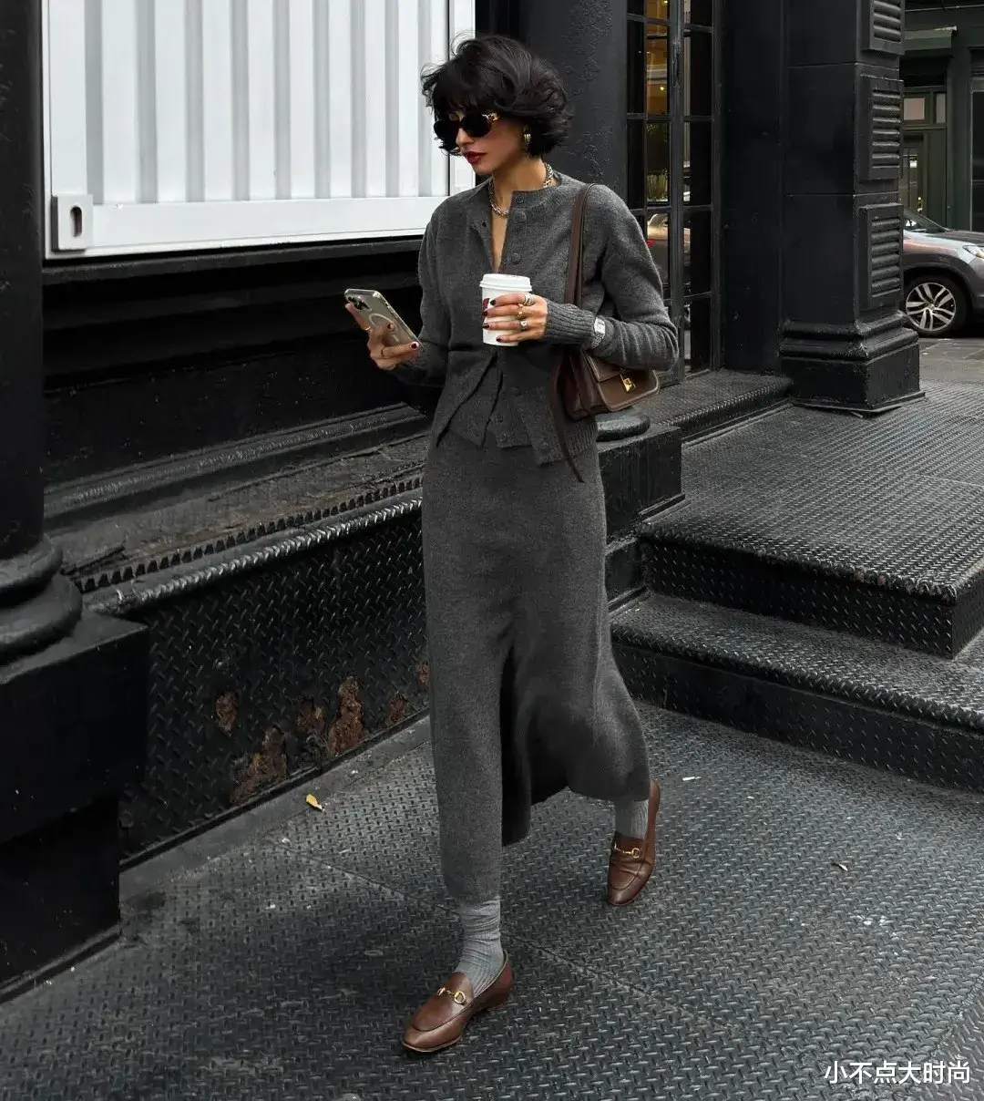 今年冬天的各种半裙中,点点最建议35岁以上矮个子穿的,就是“格雷半裙”,即grey半裙——灰色半裙!