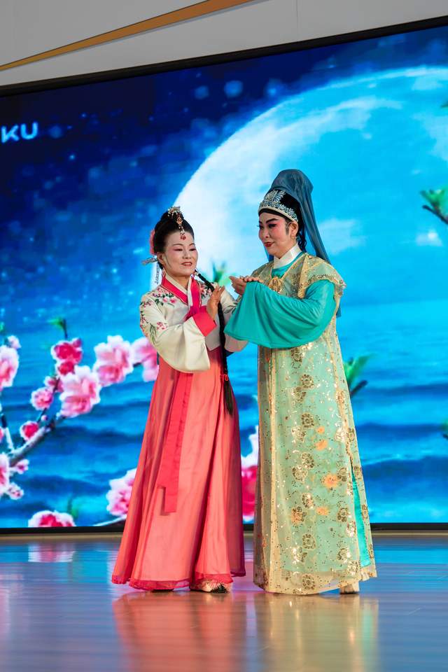紧随其后,孙建龙、李玉萍带来的男女二重唱《我爱你中国》,以深情的歌声抒发了对祖国的无限热爱,引起了全场观众的强烈共鸣。黄梅戏《大爱歌》选段,由李翠平、王金蓉联袂演出,婉转的唱腔、动人的情节,展现了传统戏曲的独特魅力,也歌颂了人间真情与大爱。