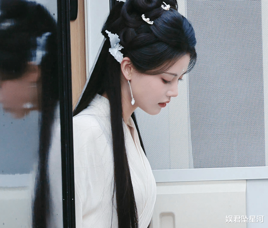 眉间的白色花钿符合女主灵草身份的设定,头发的上白色羽毛装饰,也和女主鸭毛的名字比较契合,妆容还是很贴切。
