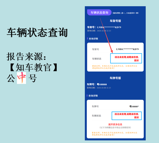 解决方案:知车教官的“状态+原因”双保险在【知车教官】公众号,我们提供双重保障查询: