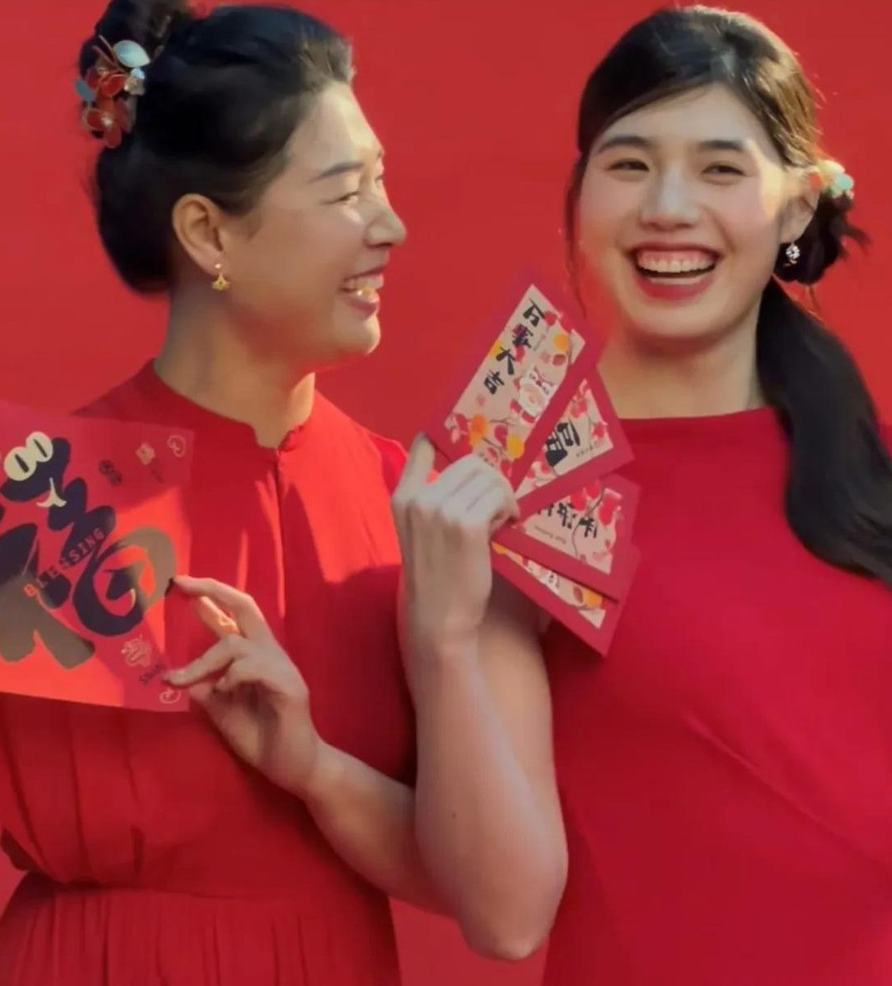 张雨霏以其大方、优雅的形象和不懈的努力,成为深受欢迎的体育明星。她是个很孝顺的女孩,元宵节这天和妈妈穿着同样的红色裙子一起拍合影。张雨霏青春靓丽,没想到她妈妈风韵犹存,比女儿更漂亮,让网友惊叹母女花真迷人。