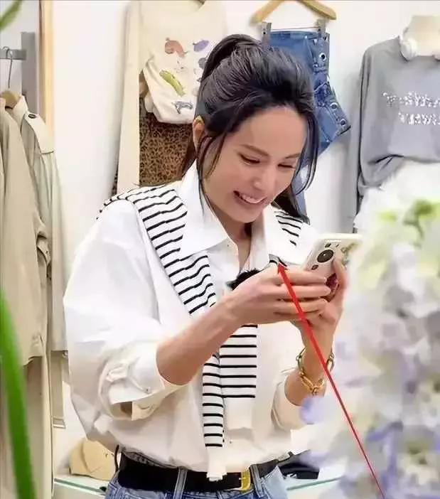 58岁的李若彤出现在杭州街头,一个人逛街。