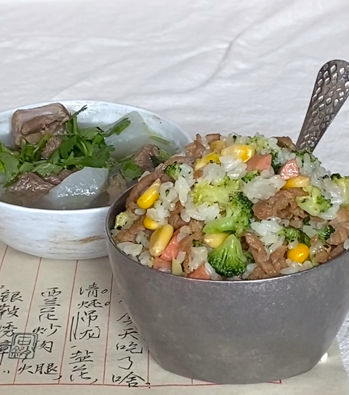 将这锅炒饭盛入碗中,热气携带着复合的香气扑面而来。金黄的玉米、翠绿的西兰花、粉红的火腿与酱色的肉片,紧紧拥抱着颗颗分明的米饭。入口,大先是米粒的干香与锅气,接着是肉的嫩滑、西兰花的清爽、玉米的微甜以及火腿的醇厚,各种味道在口中和谐奏鸣。它或许登不上豪华宴席,却是家中厨房里最安稳、最治愈的风景。在匆忙的黄昏,或是慵懒的周末中午,花上不多的时间,为自己或家人炒上这样一锅饭,不需要精确的克数,也不必拘泥于固定的搭配,一切随心的创造与家常的烟火气,便是生活最本真的味道。这,正是简食之美的精髓所在——用最平凡的付出,收获最暖心的饱足。
