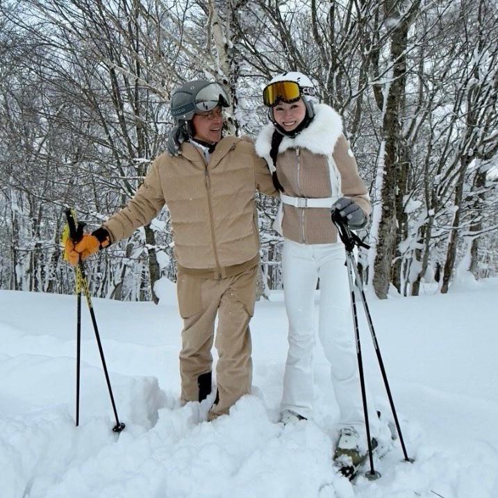 在雪地上,许晋亨还不由看向李嘉欣,那眼神仿佛在说:我老婆也太漂亮了吧!怎么看都看不腻。