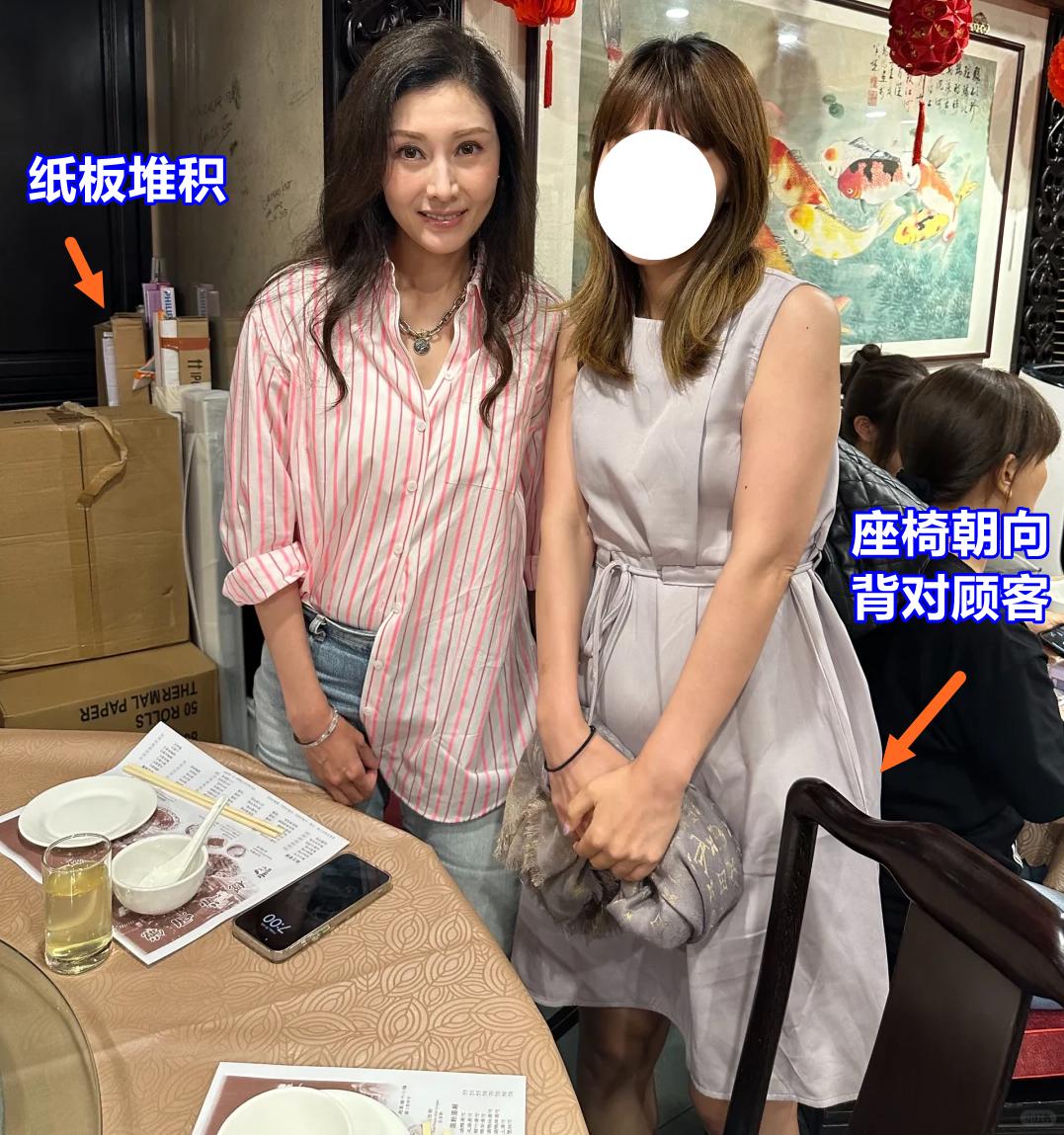 从李嘉欣的选座来看,她应该是不想被认出的,她的座位旁堆放着一些废弃纸板,很像餐厅用来放杂物的边角地方。