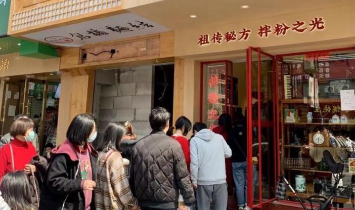 排队的人们有序地等待,一边聊着天,一边偶尔瞥一眼店门,掂量着还能等多久。