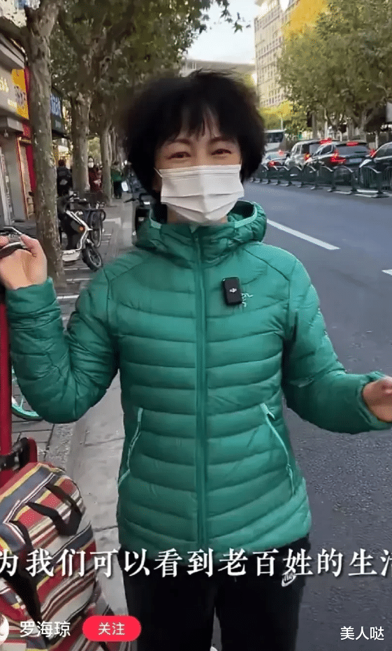 为了避免大妈卷发显老的问题,罗海琼选择了时尚的穿搭风格,以及亮眼的绿色羽绒服。这种搭配在一定程度上中和了发型的显老感,使整体形象更为活力和时尚。