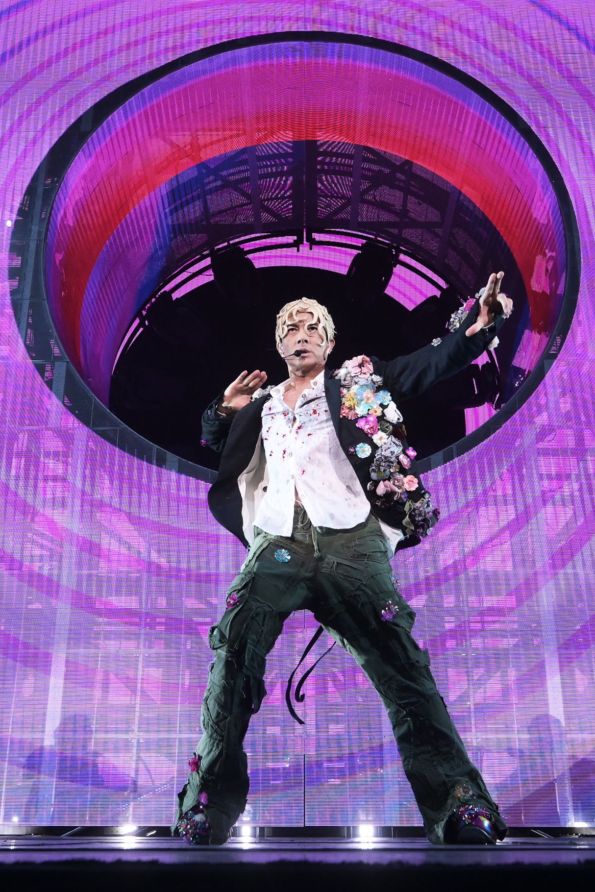 整场演出高潮迭起,郭富城不仅演绎了《狂野之城》、经典情歌《爱的呼唤》以及《我为何让你走》等标志性金曲,还在《砌你》表演中首次将舞台变成画室,边唱边作画,将个人艺术融入表演,创意十足。此外,《无忌》章节中的十字灯阵舞台仿佛让观众置身于科幻世界,郭富城身着铁甲配合AI特效,极具未来感。《飞》时,他再次通过泼墨作画,让全场掌声如雷。
