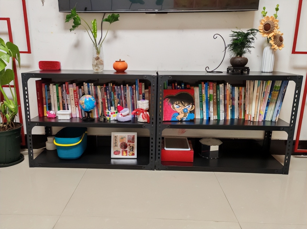 用角钢用螺丝固定好,然后放在电视柜下面,平时可以收纳家里的杂物和书本。